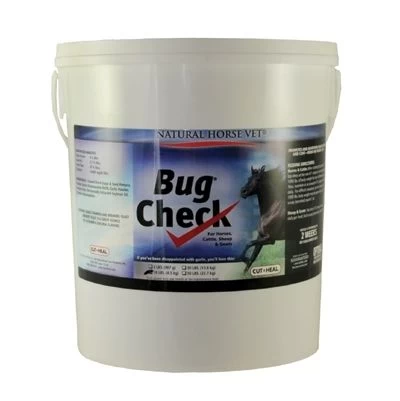 Bug Check by Cut-Heal promotes and maintains healthy skin and coat from the inside, OUT! If you’ve been disappointed with garlic, you’ll love this! A chemical-free feed supplement to reduce fly problems and enhance coat. Repellency is created from the inside out with use of: Brewers Yeast, Thiamine Monohydrate, and Garlic Diatomaceous Earth that passes through the manure — it naturally interrupts the fly reproduction cycle.