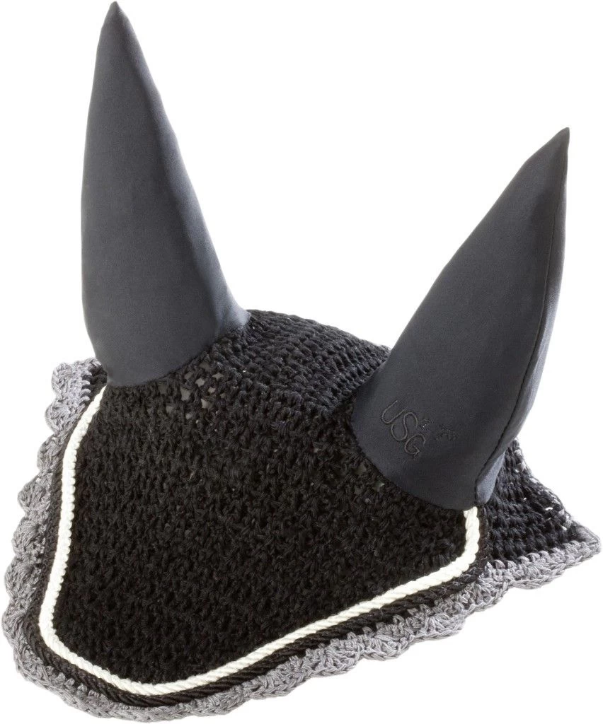 The USG Fly Veils are made of 100 % cotton crochet with Lycra ears and have an elegant double rope piping accent. Available in a variety of attractive color combinations. Â