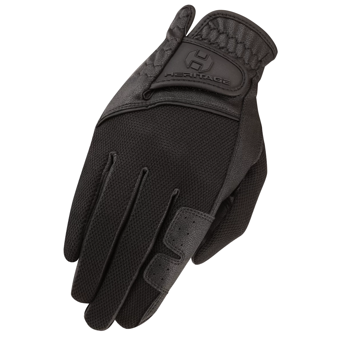 The X-Country glove was developed to meet the high level of competition use for Eventing and Endurance riders. This glove has excellent grip on the reins and a breathable mesh material on the back for ventilation on the Cross Country course or out on the trail.