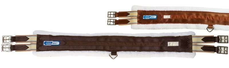Built the same as our standard fleece girth with CoolMax lining for all year comfort. 100% cotton girth with reinforced nylon webbing. This washable girth features roller buckles and heavy duty elastic on both ends to distribute girth pressure evenly. Choose from Brown or Chocolate Brown with White Fleece.